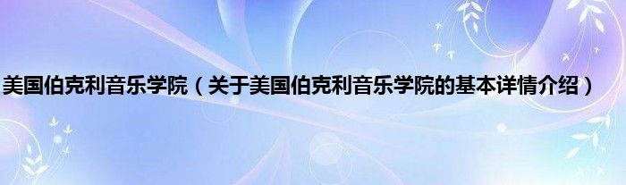 大家好我是小蝌蚪,美国伯克利音乐学院,关于美国伯克利音乐学院的基本详情介绍很多人还不知道,那么现在让我们一起来看看吧!