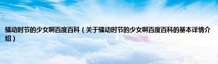 本文关于骚动时节的少女啊百度百科的基本详情介绍就讲解完毕,希望对大家有所帮助。
