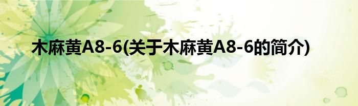 1、 木麻黄A8-6是一种木麻黄科、木麻黄属植物。