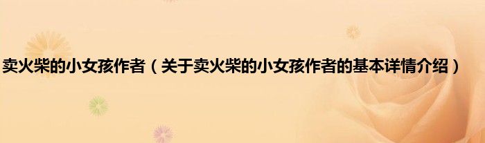 本文关于卖火柴的小女孩作者的基本详情介绍就讲解完毕,希望对大家有所帮助。