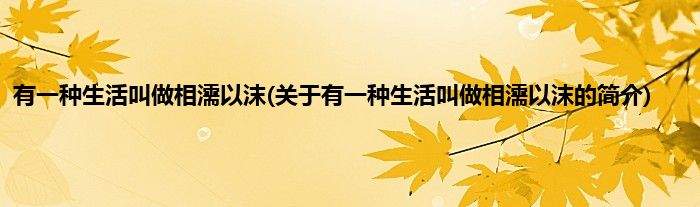 有一种生活叫做相濡以沫(关于有一种生活叫做相濡以沫的简介)