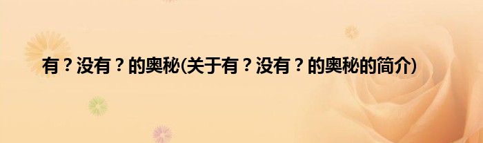 本文关于有?没有?的奥秘的简介就讲解完毕,希望对大家有所帮助。