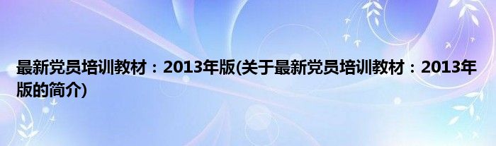 本文关于最新党员培训教材:2013年版的简介就讲解完毕,希望对大家有所帮助。