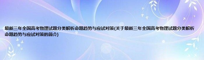 本文关于最新三年全国高考物理试题分类解析命题趋势与应试对策的简介就讲解完毕,希望对大家有所帮助。