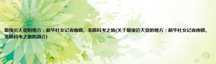 大家好,最接近天堂的地方:新华社女记者南极、北极科考之旅,关于最接近天堂的地方:新华社女记者南极、北极科考之旅的简介很多人还不知道,现在让我们一起来看看吧!