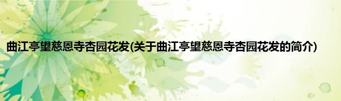 大家好,曲江亭望慈恩寺杏园花发,关于曲江亭望慈恩寺杏园花发的简介很多人还不知道,现在让我们一起来看看吧!