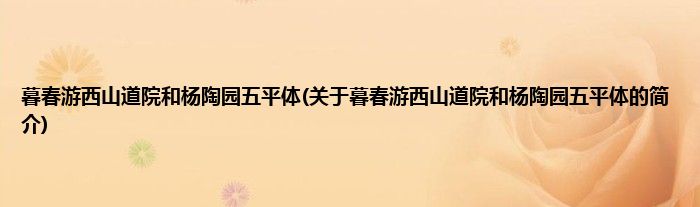 本文关于暮春游西山道院和杨陶园五平体的简介就讲解完毕,希望对大家有所帮助。