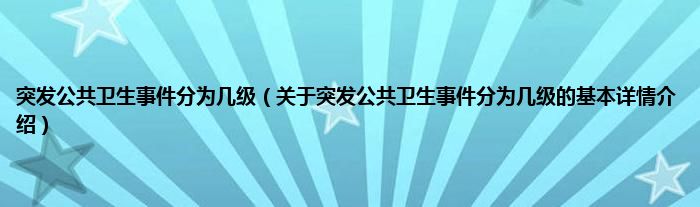 本文关于突发公共卫生事件分为几级的基本详情介绍就讲解完毕,希望对大家有所帮助。