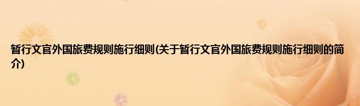 大家好,暂行文官外国旅费规则施行细则,关于暂行文官外国旅费规则施行细则的简介很多人还不知道,现在让我们一起来看看吧!