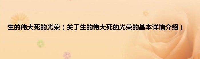 生的伟大死的光荣(关于生的伟大死的光荣的基本详情介绍)