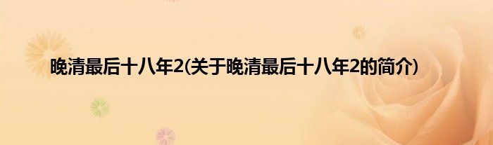 本文关于晚清最后十八年2的简介就讲解完毕,希望对大家有所帮助。