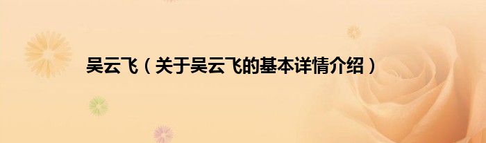 本文关于吴云飞的基本详情介绍就讲解完毕,希望对大家有所帮助。