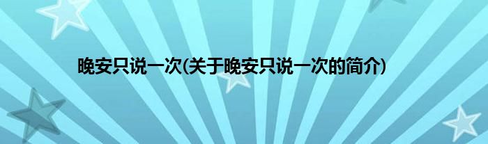 大家好,晚安只说一次,关于晚安只说一次的简介很多人还不知道,现在让我们一起来看看吧!
