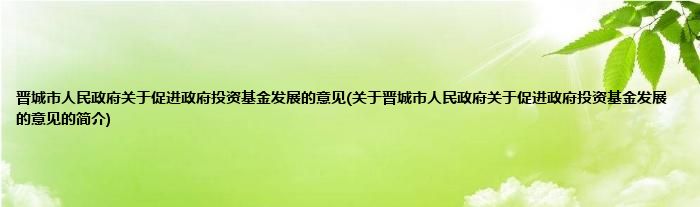 本文关于晋城市人民政府关于促进政府投资基金发展的意见的简介就讲解完毕,希望对大家有所帮助。