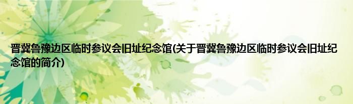 本文关于晋冀鲁豫边区临时参议会旧址纪念馆的简介就讲解完毕,希望对大家有所帮助。