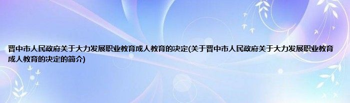 本文关于晋中市人民政府关于大力发展职业教育成人教育的决定的简介就讲解完毕,希望对大家有所帮助。