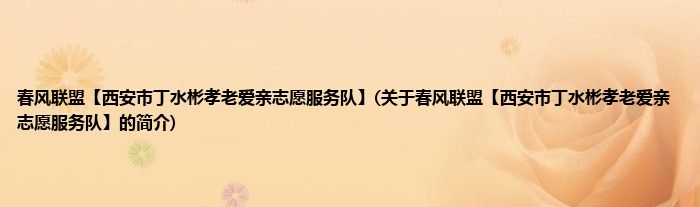 春风联盟【西安市丁水彬孝老爱亲志愿服务队】(关于春风联盟【西安市丁水彬孝老爱亲志愿服务队】的简介)