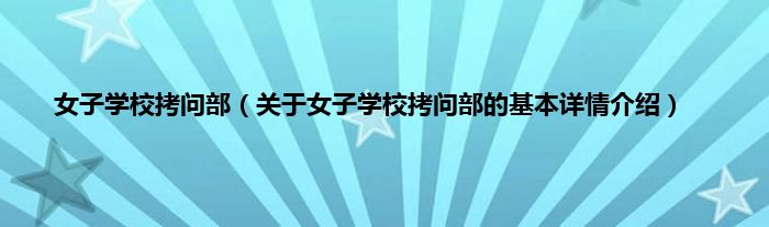 本文关于女子学校拷问部的基本详情介绍就讲解完毕,希望对大家有所帮助。