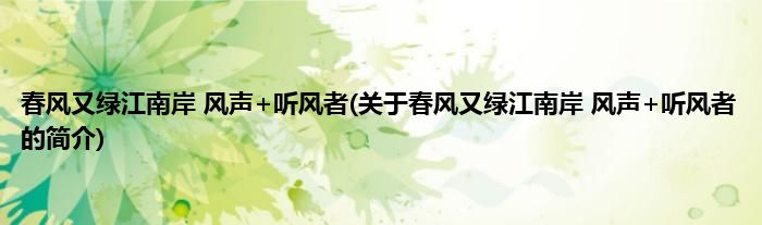 春风又绿江南岸 风声+听风者(关于春风又绿江南岸 风声+听风者的简介)