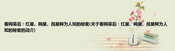 本文关于春网幕后:红星、网星、民星鲜为人知的秘密的简介就讲解完毕,希望对大家有所帮助。