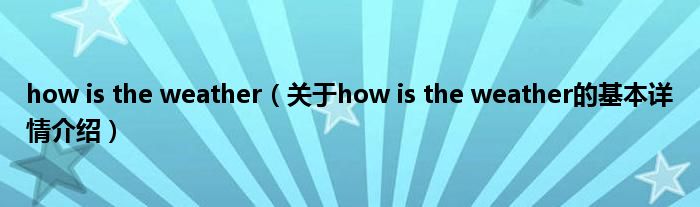 本文关于how is the weather的基本详情介绍就讲解完毕,希望对大家有所帮助。