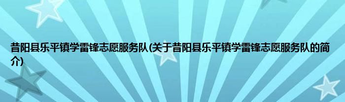本文关于昔阳县乐平镇学雷锋志愿服务队的简介就讲解完毕,希望对大家有所帮助。