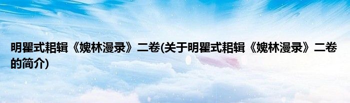 本文关于明瞿式耜辑《媿林漫录》二卷的简介就讲解完毕,希望对大家有所帮助。