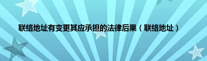 大家好,精选小编来为大家解答以上问题。联络地址有变更其应承担的法律后果,联络地址很多人还不知道,现在让我们一起来看看吧!