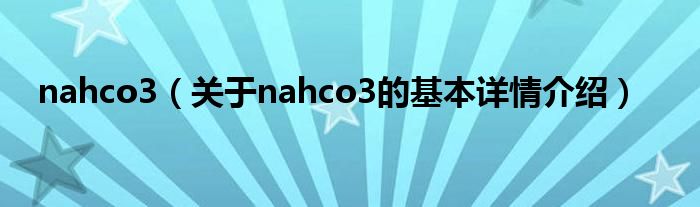 本文关于nahco3的基本详情介绍就讲解完毕,希望对大家有所帮助。