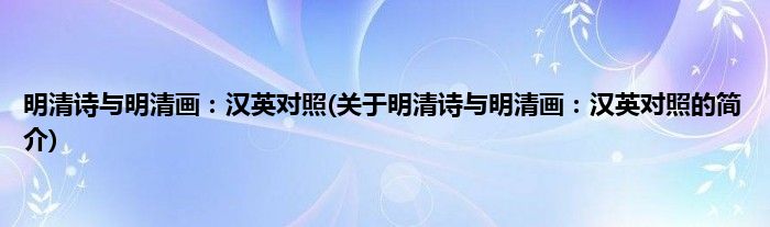 本文关于明清诗与明清画:汉英对照的简介就讲解完毕,希望对大家有所帮助。