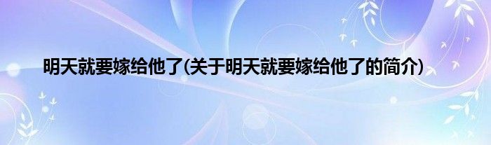 明天就要嫁给他了(关于明天就要嫁给他了的简介)