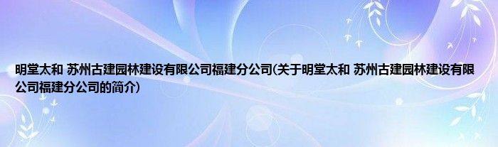 大家好,明堂太和 苏州古建园林建设有限公司福建分公司,关于明堂太和 苏州古建园林建设有限公司福建分公司的简介很多人还不知道,现在让我们一起来看看吧!