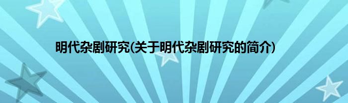 本文关于明代杂剧研究的简介就讲解完毕,希望对大家有所帮助。