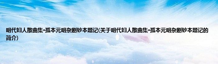 明代妇人散曲集·孤本元明杂剧钞本题记(关于明代妇人散曲集·孤本元明杂剧钞本题记的简介)