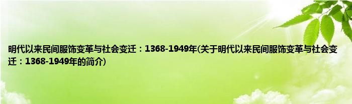 明代以来民间服饰变革与社会变迁:1368-1949年(关于明代以来民间服饰变革与社会变迁:1368-1949年的简介)