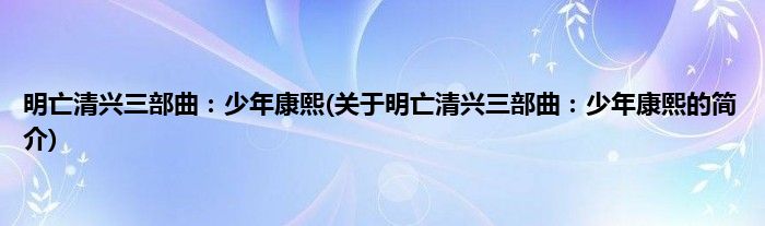本文关于明亡清兴三部曲:少年康熙的简介就讲解完毕,希望对大家有所帮助。