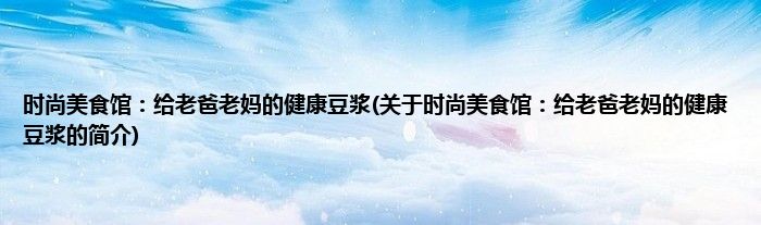 本文关于时尚美食馆:给老爸老妈的健康豆浆的简介就讲解完毕,希望对大家有所帮助。