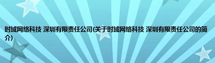 本文关于时域网络科技 深圳有限责任公司的简介就讲解完毕,希望对大家有所帮助。