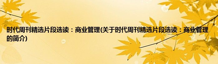 本文关于时代周刊精选片段选读:商业管理的简介就讲解完毕,希望对大家有所帮助。