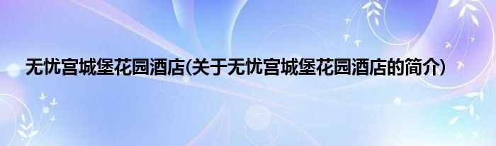 本文关于无忧宫城堡花园酒店的简介就讲解完毕,希望对大家有所帮助。