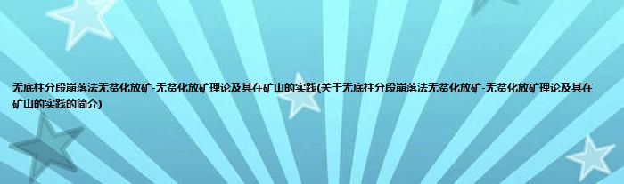1、 《无底柱分段崩落法无贫化放矿-无贫化放矿理论及其在矿山的实践》是2007年东北大学出版社出版的图书,作者是张志贵等。