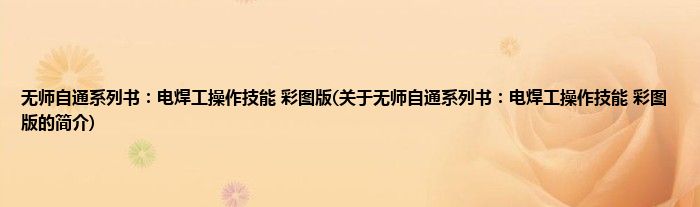 本文关于无师自通系列书:电焊工操作技能 彩图版的简介就讲解完毕,希望对大家有所帮助。