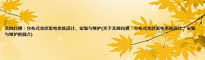 本文关于无师自通:分布式光伏发电系统设计、安装与维护的简介就讲解完毕,希望对大家有所帮助。