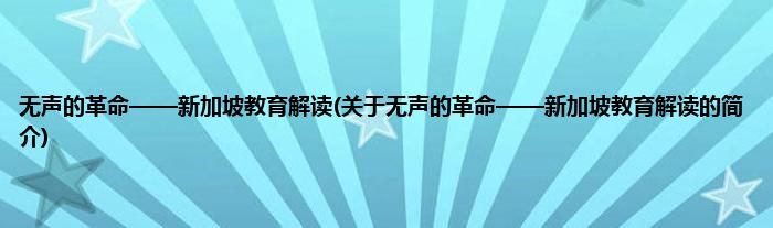 本文关于无声的革命——新加坡教育解读的简介就讲解完毕,希望对大家有所帮助。