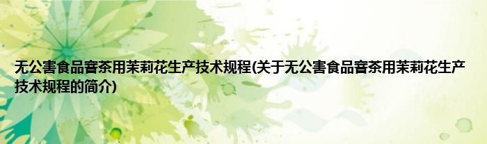 无公害食品窨茶用茉莉花生产技术规程(关于无公害食品窨茶用茉莉花生产技术规程的简介)