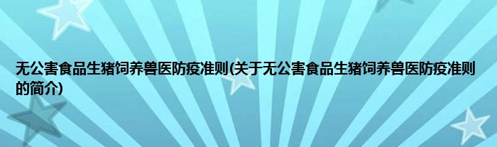 大家好,无公害食品生猪饲养兽医防疫准则,关于无公害食品生猪饲养兽医防疫准则的简介很多人还不知道,现在让我们一起来看看吧!
