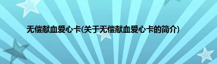 本文关于无偿献血爱心卡的简介就讲解完毕,希望对大家有所帮助。