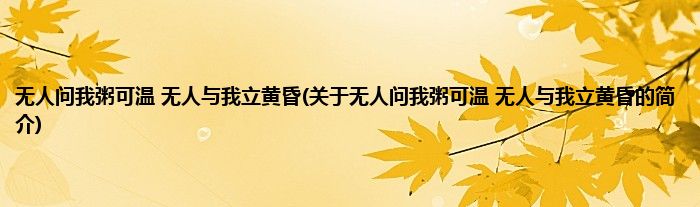 无人问我粥可温 无人与我立黄昏(关于无人问我粥可温 无人与我立黄昏的简介)