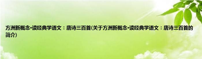 本文关于方洲新概念·读经典学语文:唐诗三百首的简介就讲解完毕,希望对大家有所帮助。