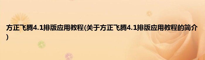 大家好,方正飞腾4.1排版应用教程,关于方正飞腾4.1排版应用教程的简介很多人还不知道,现在让我们一起来看看吧!